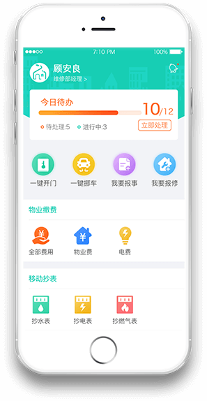 掌上APP,让管理者能够快速安排员工工作、在线派单、远程监管,让员工实现在线接单、在线报修、移动抄表、在线收费等在线办公,提高员工工作效率,提升物业管理能力,同时也提升了业主商户的满意度。
